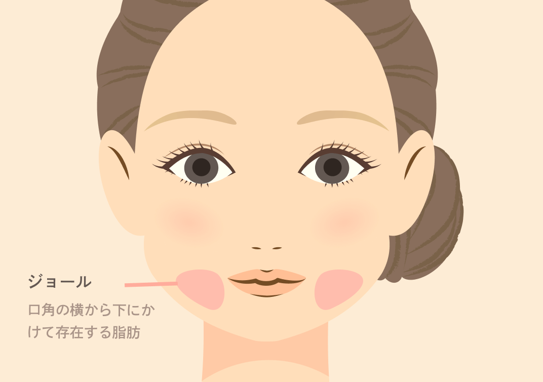 ジョールファットは、口元から口角下にかけてある脂肪です。除去することで、フェイスラインのゆるみやマリオネットラインのたるみが改善され、すっきりと引き締まった輪郭になります。